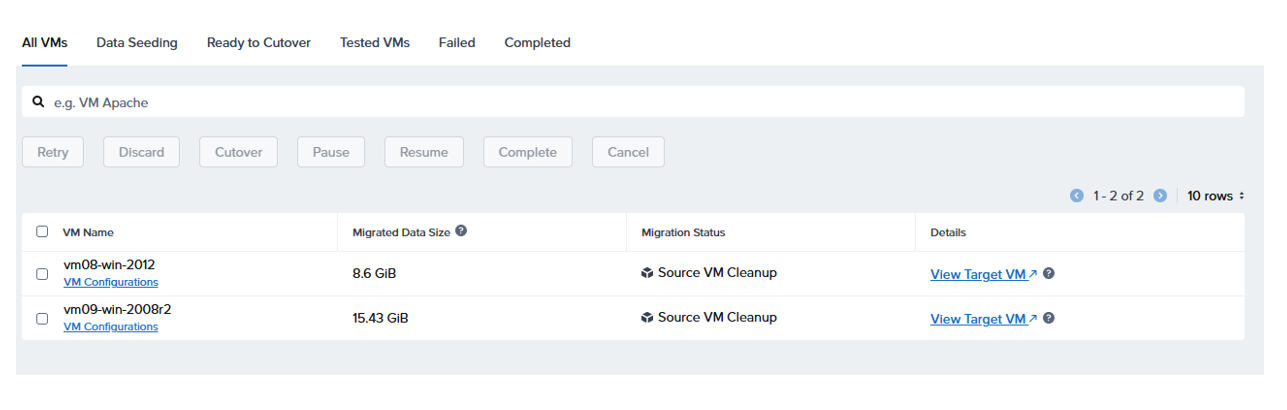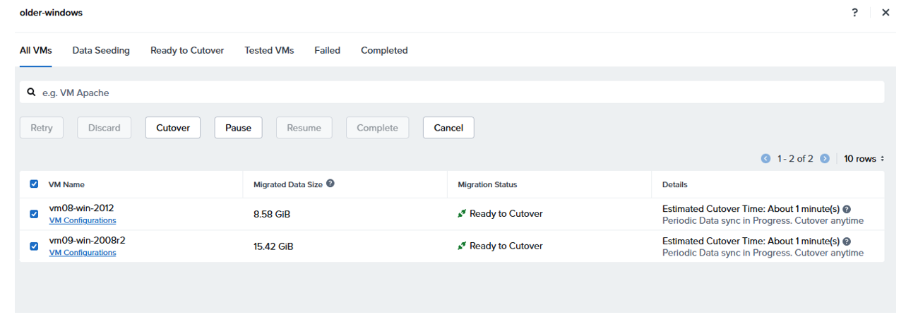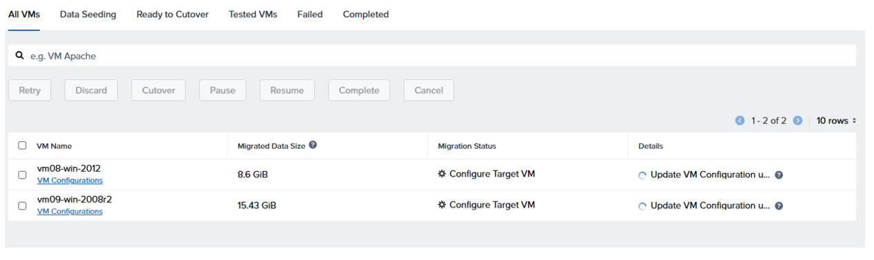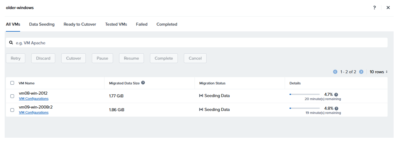 Wait for plan to validate and move to in progress, click on View Details to see the estimated remaining time The plan will move through various stages, Seeding Data, then Ready for Cutover