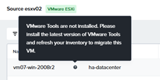 Note why a VM is not available to migrate