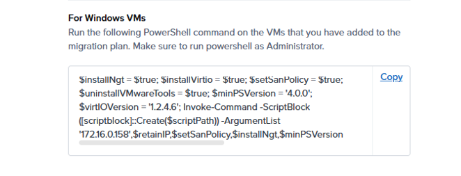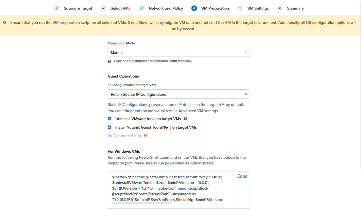 Go back to the Move console, Copy and Run the Preparation script on the target servers